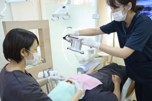 ホワイトニング前の色調を確認し、白くなる目標を確認します。